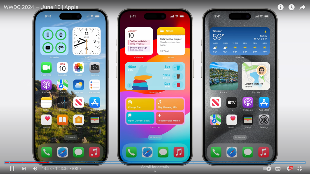 iOS 18 takes home screen customization to the next level. Widgets are now more interactive, allowing users to perform tasks directly from the widget itself. For instance, you can control smart home devices, manage playlists, or even draft quick messages without opening the app. The new “Smart Stack” widget intelligently prioritizes the widgets that you use most often, making it easier to access the information you need when you need it.